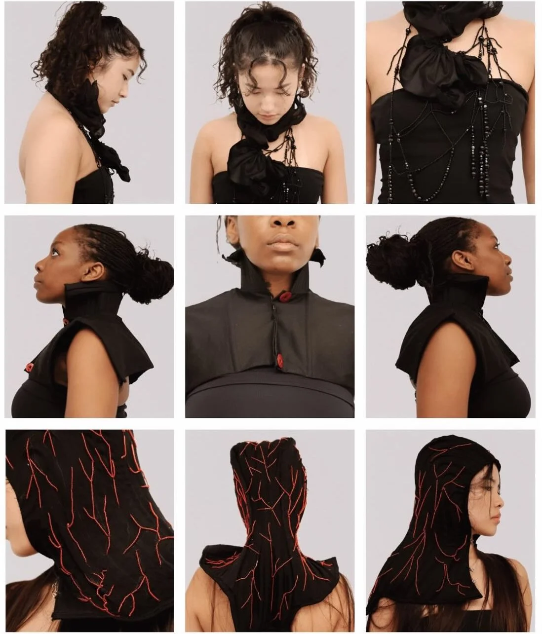 For my integrative fashion studio, my group and I created three neckwear pieces that directed the head unnaturally or uncomfortably, connecting to the historical research of how society and cultures used the neck as a form of protest and resistance. My piece was constructed to force the head down.